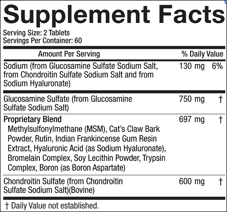 - Glucosamine Sulfate – Rebuilds cartilage and cushions joints